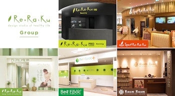 Re.Ra.Ku Group (リラク グループ) は「Re.Ra.Ku 」を中心に全国に約300店舗のリラクゼーションスタジオを展開しています。商業施設や路面店に展開をする「Re.Ra.Ku 」以外にも、温浴施設に展開する「Spa Re.Ra.Ku 」、複合型ランニングステーションを展開をする「Re.Ra.Ku PRO」、地方を中心にリフレクソロジーやアロマボディケアなどの豊富なメニューを展開する「Bell Epoc」、アジアン手技を展開する「Ruam Ruam」の5つのブランドを展開しています。